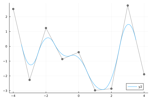 - Provides a fitting algorithm using least squares. (via BasicBSplineFitting.jl)