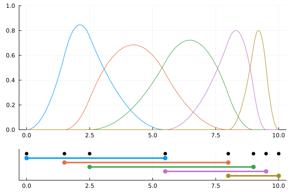 plot!(pl2, bsplinesupport(P,i); offset=-i/10, linewidth=3, markersize=5, ylims=(-(dim(P)+1)/10, 1/10))