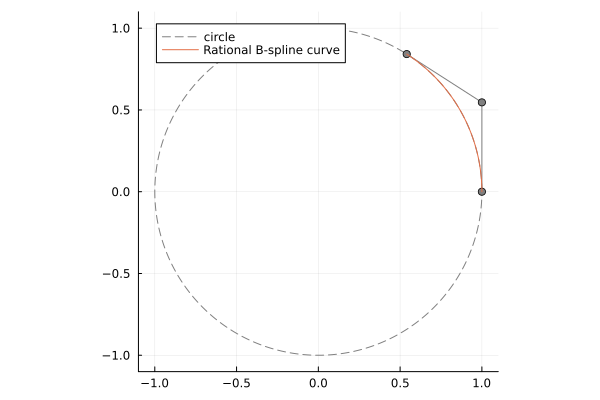 using PlotsNon-uniform rational basis spline (NURBS) is also supported in BasicBSpline.jl package.