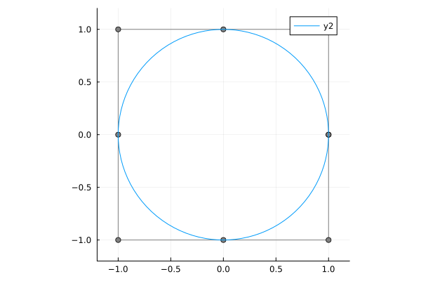 plot([cosd(t) for t in 0:360], [sind(t) for t in 0:360]; xlims=(-1.1,1.1), ylims=(-1.1,1.1), aspectratio=1, label="circle", color=:gray, linestyle=:dash)
